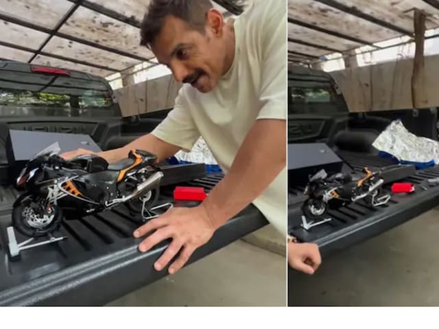 John Abraham was gifted a scale model of Suzuki Hayabusa by his fan, the video of which is viral on social media. John also drove the same bike in the film Dhoom.