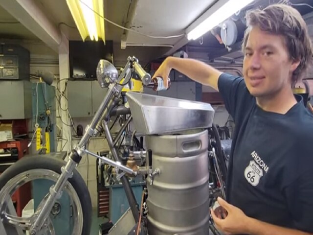 VIDEO: This bike runs on beer, not petrol, talks to air at a speed of 240KMPH, a person did wonders – Beer powered motorcycle unusual inventions created by ky michaelson says it could reach speeds up to 240 km per hour